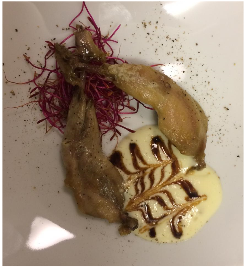 Gekonfijte kwartelboutjes in ganzenvet met een gladde van balsamico